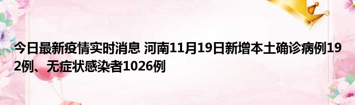 今日最新疫情实时消息 河南11月19日新增本土确诊病例192例、无症状感染者1026例