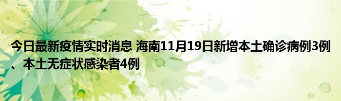 今日最新疫情实时消息 海南11月19日新增本土确诊病例3例、本土无症状感染者4例