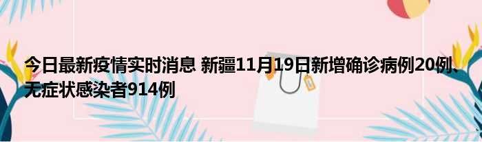 11月20日,新疆卫健委通报:11月19日0时至24时,新疆维吾尔自治区新增确诊病例20例,新增无症状感染者914例,新增确诊病例治愈出院6例,