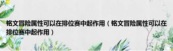 铭文冒险属性可以在排位赛中起作用(铭文冒险属性可以在排位赛中起作用)
