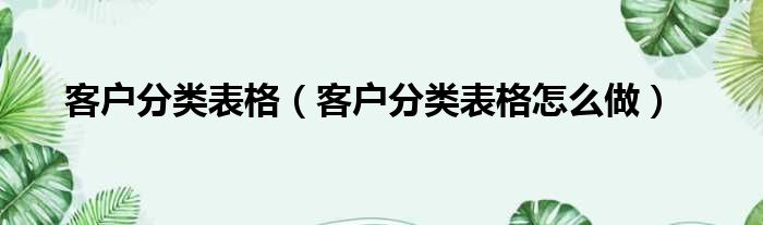 大家好,今天小六子来为大家解答以下的问题,关于客户分类表格,客户分类表格怎么做这个很多人还不知道,现在让我们一起来看看吧!