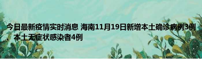 今日最新疫情实时消息 海南11月19日新增本土确诊病例3例、本土无症状感染者4例