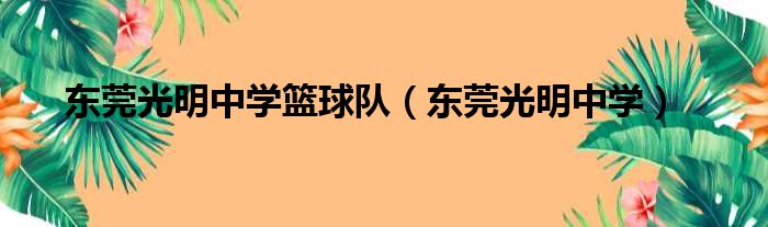 导读 大家好,今天小六子来为大家解答以下的问题,关于东莞光明中学篮球队,东莞光明中学这个很多人还不知道,现在让我们一起来看看吧!1、光明中