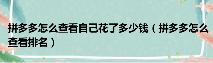 拼多多怎么查看自己花了多少钱(拼多多怎么查看排名)