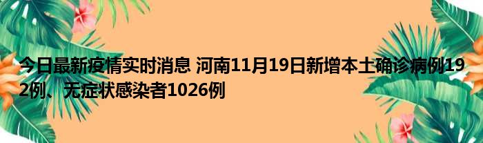 今日最新疫情实时消息 河南11月19日新增本土确诊病例192例、无症状感染者1026例