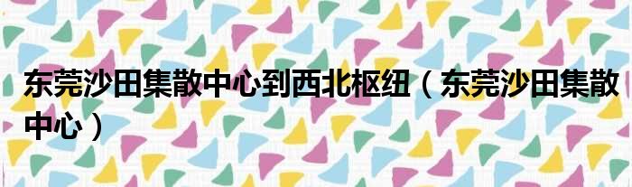 东莞沙田集散中心到西北枢纽(东莞沙田集散中心)