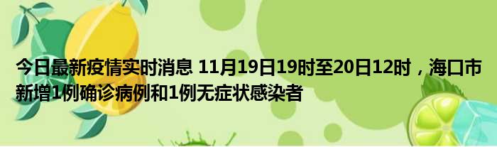 今日最新疫情实时消息 11月19日19时至20日12时,海口市新增1例确诊病例和1例无症状感染者