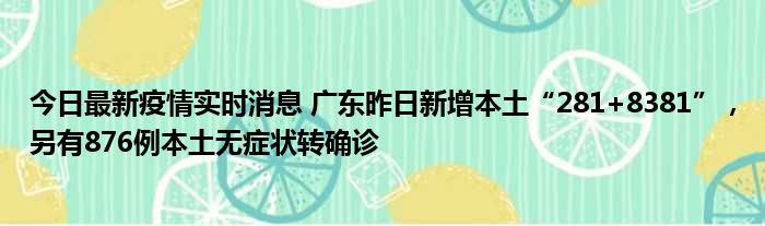 今日最新疫情实时消息 广东昨日新增本土“281+8381”,另有876例本土无症状转确诊