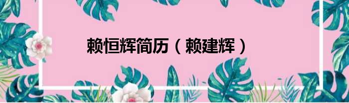大家好,今天小六子来为大家解答以下的问题,关于赖恒辉简历,赖建辉这个很多人还不知道,现在让我们一起来看看吧!