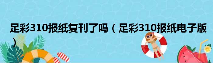 足彩310报纸复刊了吗(足彩310报纸电子版)