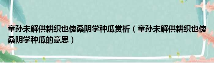 童孙未解供耕织也傍桑阴学种瓜赏析(童孙未解供耕织也傍桑阴学种瓜的意思)