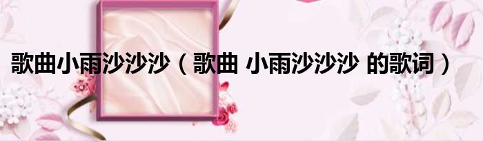 导读 大家好,今天小六子来为大家解答以下的问题,关于歌曲小雨沙沙沙,歌曲 小雨沙沙沙 的歌词这个很多人还不知道,现在让我们一起来看看吧!1