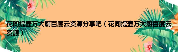 花间提壶方大厨百度云资源分享吧(花间提壶方大厨百度云资源)