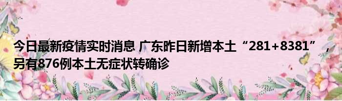 今日最新疫情实时消息 广东昨日新增本土“281+8381”,另有876例本土无症状转确诊