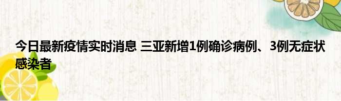 今日最新疫情实时消息 三亚新增1例确诊病例、3例无症状感染者