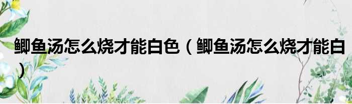 鲫鱼汤怎么烧才能白色(鲫鱼汤怎么烧才能白)