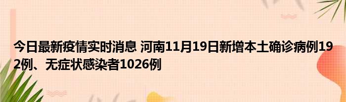 今日最新疫情实时消息 河南11月19日新增本土确诊病例192例、无症状感染者1026例