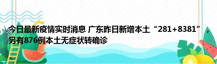今日最新疫情实时消息 广东昨日新增本土“281+8381”,另有876例本土无症状转确诊