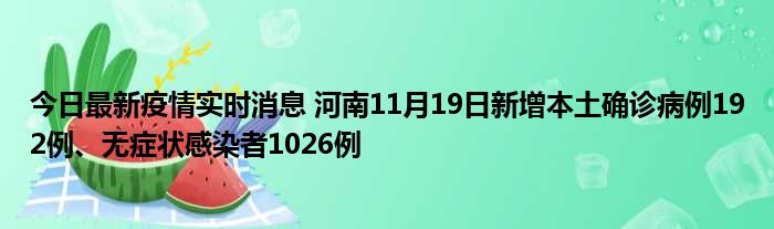 今日最新疫情实时消息 河南11月19日新增本土确诊病例192例、无症状感染者1026例