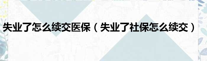 大家好,今天小六子来为大家解答以下的问题,关于失业了怎么续交医保,失业了社保怎么续交这个很多人还不知道,现在让我们一起来看看吧!