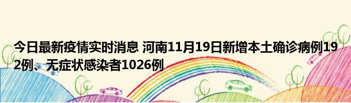今日最新疫情实时消息 河南11月19日新增本土确诊病例192例、无症状感染者1026例