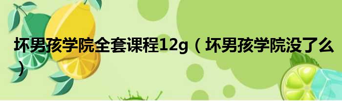 导读 大家好,今天小六子来为大家解答以下的问题,关于坏男孩学院全套课程12g,坏男孩学院没了么这个很多人还不知道,现在让我们一起来看看吧!1