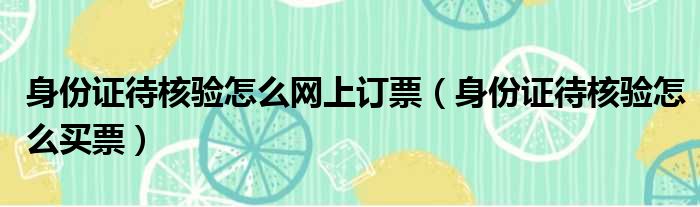 身份证待核验怎么网上订票(身份证待核验怎么买票)