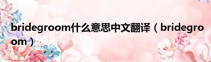 大家好,今天小六子来为大家解答以下的问题,关于bridegroom什么意思中文翻译,bridegroom这个很多人还不知道,现在让我们一起来看看吧!
