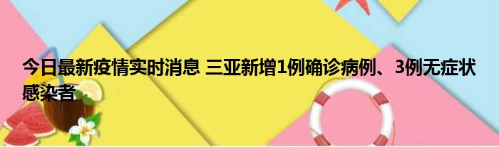 今日最新疫情实时消息 三亚新增1例确诊病例、3例无症状感染者