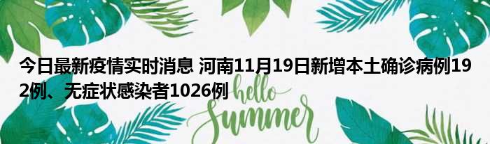 今日最新疫情实时消息 河南11月19日新增本土确诊病例192例、无症状感染者1026例