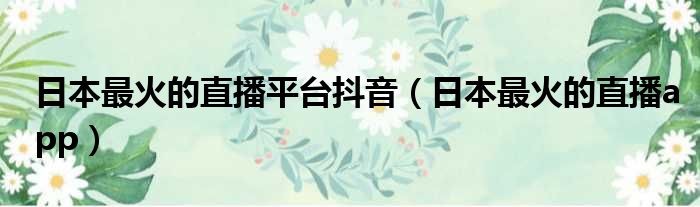 导读 大家好,今天小六子来为大家解答以下的问题,关于日本最火的直播平台抖音,日本最火的直播app这个很多人还不知道,现在让我们一起来看看吧!