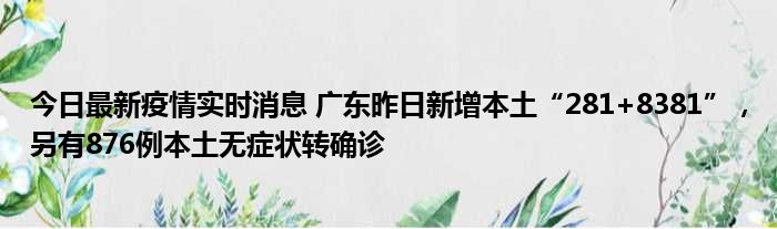 今日最新疫情实时消息 广东昨日新增本土“281+8381”,另有876例本土无症状转确诊