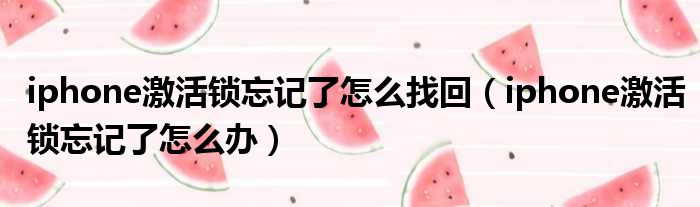iphone激活锁忘记了怎么找回(iphone激活锁忘记了怎么办)