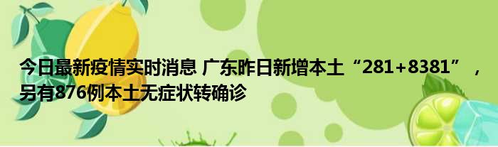 今日最新疫情实时消息 广东昨日新增本土“281+8381”,另有876例本土无症状转确诊