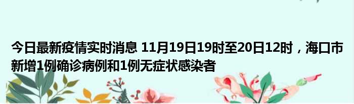 今日最新疫情实时消息 11月19日19时至20日12时,海口市新增1例确诊病例和1例无症状感染者