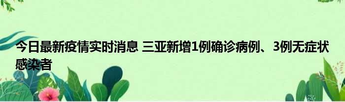 今日最新疫情实时消息 三亚新增1例确诊病例、3例无症状感染者