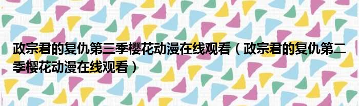 导读 大家好,今天小六子来为大家解答以下的问题,关于政宗君的复仇第三季樱花动漫在线观看,政宗君的复仇第二季樱花动漫在线观看这个很多人还不
