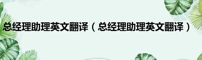 导读 大家好,今天小六子来为大家解答以下的问题,关于总经理助理英文翻译,总经理助理英文翻译这个很多人还不知道,现在让我们一起来看看吧!1、