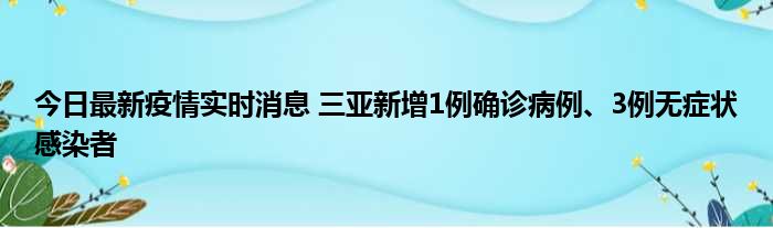 今日最新疫情实时消息 三亚新增1例确诊病例、3例无症状感染者