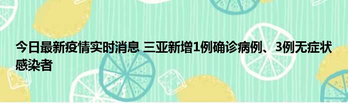 今日最新疫情实时消息 三亚新增1例确诊病例、3例无症状感染者