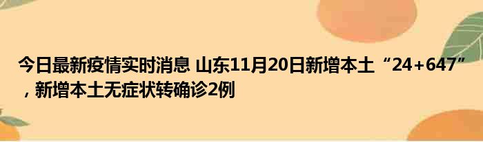 今日最新疫情实时消息 山东11月20日新增本土“24+647”,新增本土无症状转确诊2例