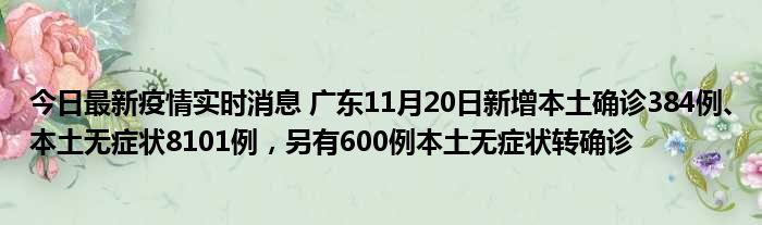 今日最新疫情实时消息 广东11月20日新增本土确诊384例、本土无症状8101例,另有600例本土无症状转确诊