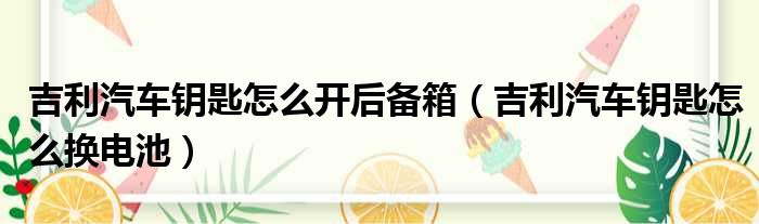 吉利汽车钥匙怎么开后备箱(吉利汽车钥匙怎么换电池)
