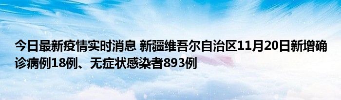 新疆卫健委通报,11月20日0时至24时,新疆维吾尔自治区新增确诊病例18例,新增无症状感染者893例,新增确诊病例治愈出院14例,新增无症状