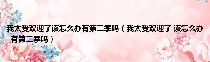 我太受欢迎了该怎么办有第二季吗(我太受欢迎了 该怎么办 有第二季吗)