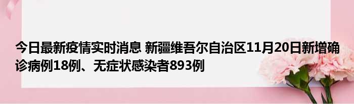 新疆卫健委通报,11月20日0时至24时,新疆维吾尔自治区新增确诊病例18例,新增无症状感染者893例,新增确诊病例治愈出院14例,新增无症状