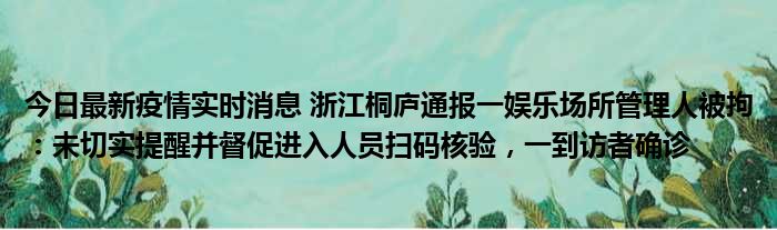 今日最新疫情实时消息 浙江桐庐通报一娱乐场所管理人被拘:未切实提醒并督促进入人员扫码核验,一到访者确诊