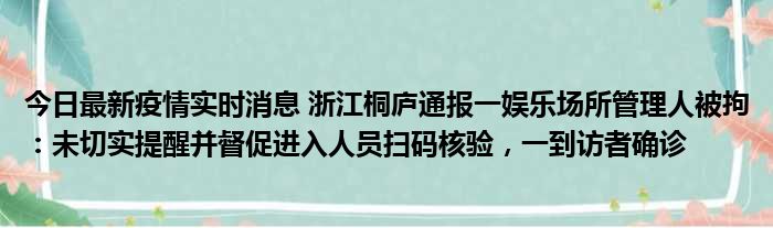 今日最新疫情实时消息 浙江桐庐通报一娱乐场所管理人被拘:未切实提醒并督促进入人员扫码核验,一到访者确诊