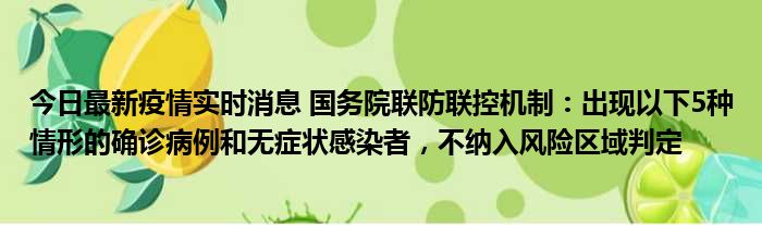 今日最新疫情实时消息 国务院联防联控机制:出现以下5种情形的确诊病例和无症状感染者,不纳入风险区域判定