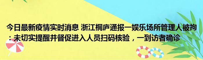 今日最新疫情实时消息 浙江桐庐通报一娱乐场所管理人被拘:未切实提醒并督促进入人员扫码核验,一到访者确诊